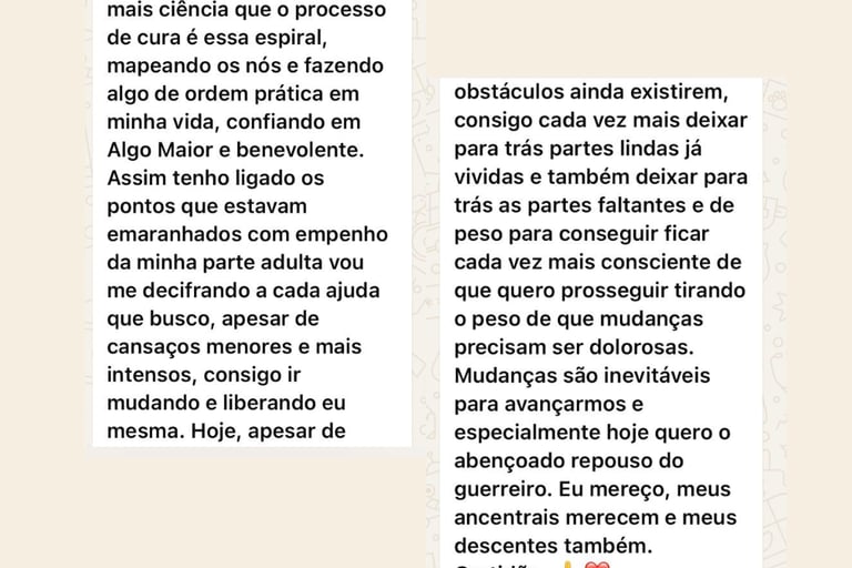 Hoje, ajudo outros brasileiros a fazerem esse caminho de volta para si mesmos, através de um processo terapêutico seguro, transformador e respeitoso.